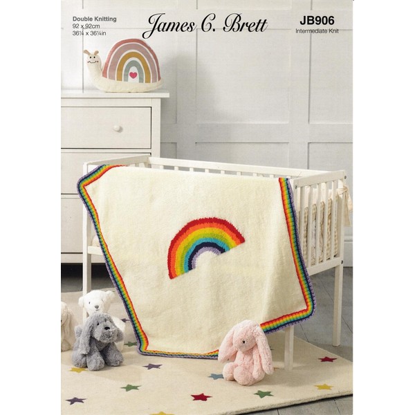 James Brett Double Knit Pattern Kids Baby Rainbow Design Blanket JB906