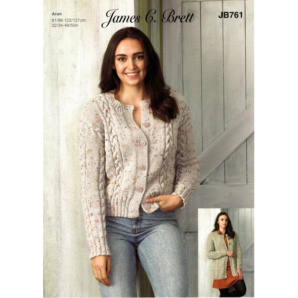 James C Brett JB761 Knitting Pattern Womens Cardigans in Rustic Aran, Beige,32'' - 50''