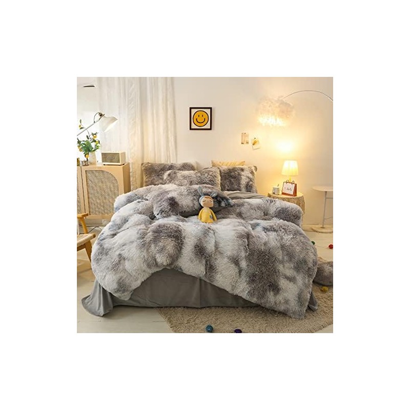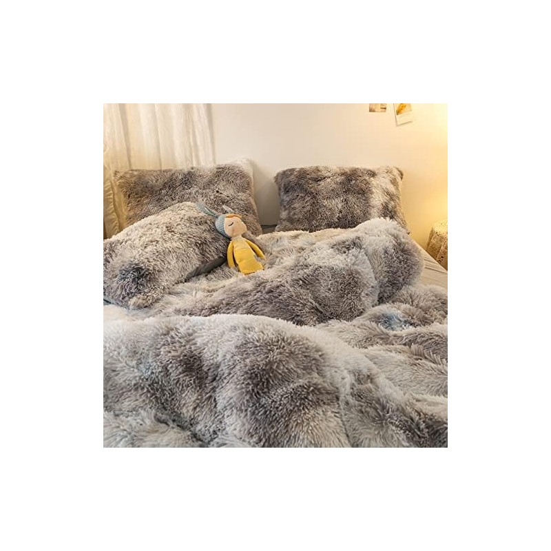 • ELEGANT LOOK & PERFECT GIFT - This fashionable, exquisite and dreamy Gray Whiteombre plush duvet cover set can bringing surprises to any room or sofa of yours. This gorgous fluffy duvet cover set is a great gift for everyone, every holiday and special occasion.