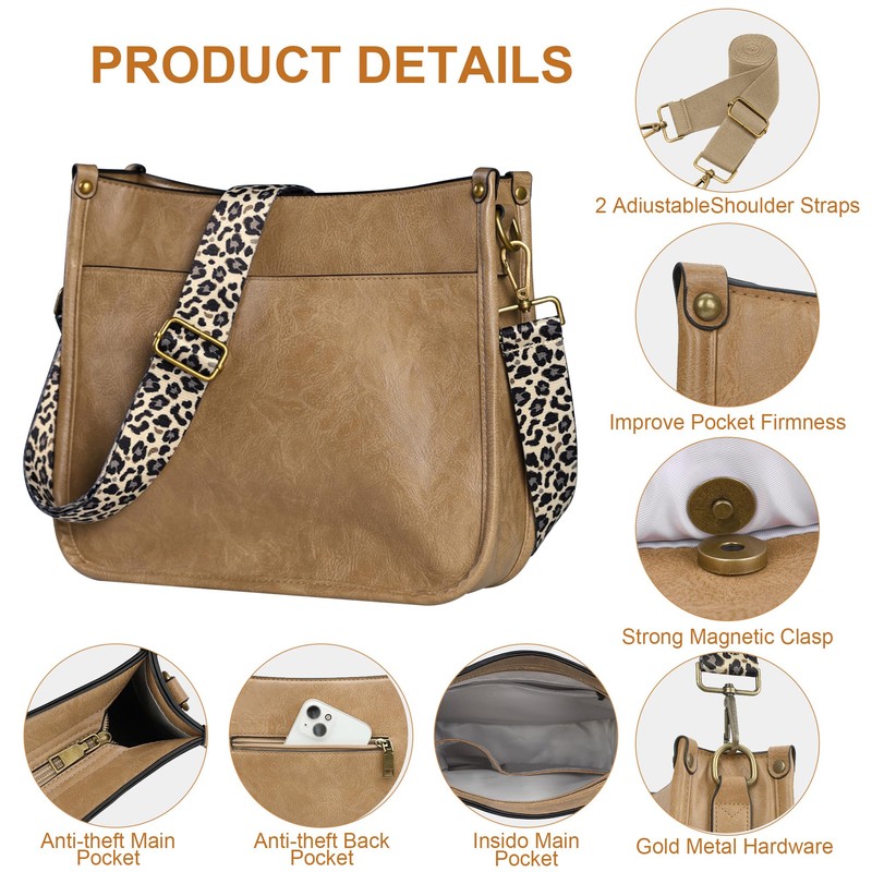- Trendy and Modern Design: The JAMfit Women's Crossbody Bag features a classic hobo style that is both simple and stylish. Crafted from high-quality vegan leather, it seamlessly complements the modern urban woman's wardrobe, adding a touch of individuality and elegance to any outfit.