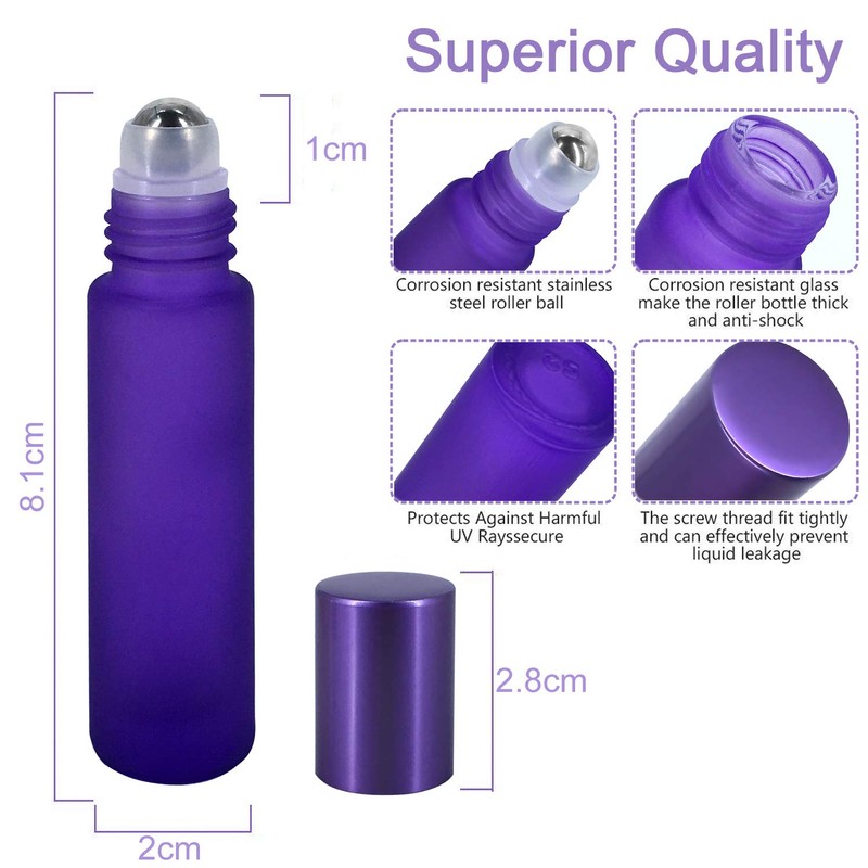 - Uso superior: las botellas con rodillo están hechas de vidrio grueso con bola de acero inoxidable, aptas para aromaterapia, perfumes, bálsamos labiales y otros líquidos.
