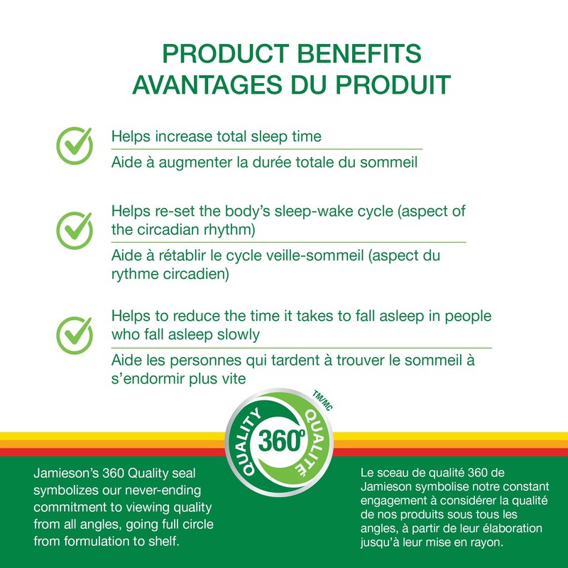 - BETTER SLEEP: Jamieson is here for your health. Quality sleep is one of the most important factors in feeling your best. Jamieson Melatonin Fast Dissolving tablets aims to help you fall asleep and restore optimal sleep patterns for a better sleep. Melatonin is a non-habit-forming, natural, and safe sleep aid.