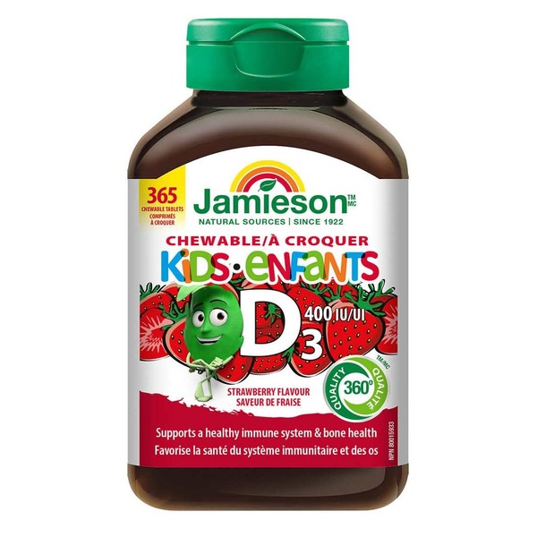Jamieson Kids Chewable Vitamin D3 400 IU, Strawberry Flavour Panda Shaped Tablets - 365 Chewable Tablets