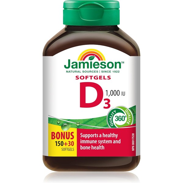 Jamieson Vitamin D3 1,000 IU- Premium can play a key role in the maintenance of good health while promoting the development of bones and teeth and helping the body effectively absorb calcium.