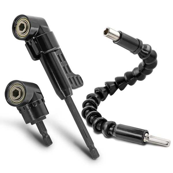 - 【 Package Content 】3pcs set: 2pcs 105 Degree Right Angle Drill Attachment (Long and Short); 1pcs 11.8" flexible screwdriver extension.