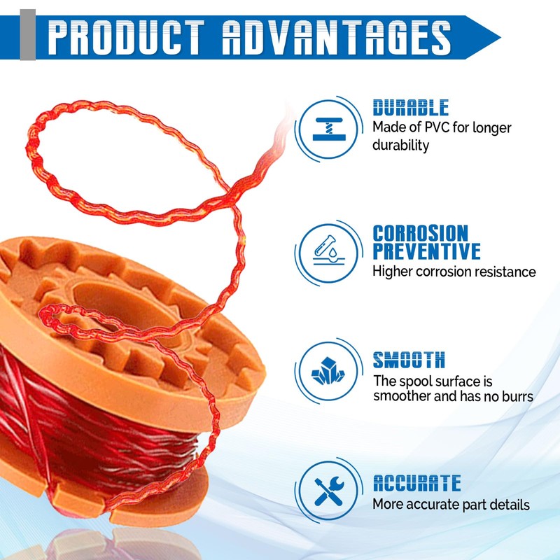 - 【Durable Material】Replacement string spool cord is made of high quality ABS material, spool sturdy enough, nylon cord is flexible, strong enough for long service life, durable and cuts lawn faster.