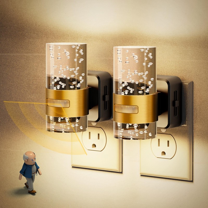 - Modern Nightlights:This plug-in bubble night light features a sleek, wall sconce-style design that emits light both upward and downward. Accented with a gold ring, it adds elegance and sophistication, making it a perfect indoor lighting solution for bedrooms, living rooms, and hallways.