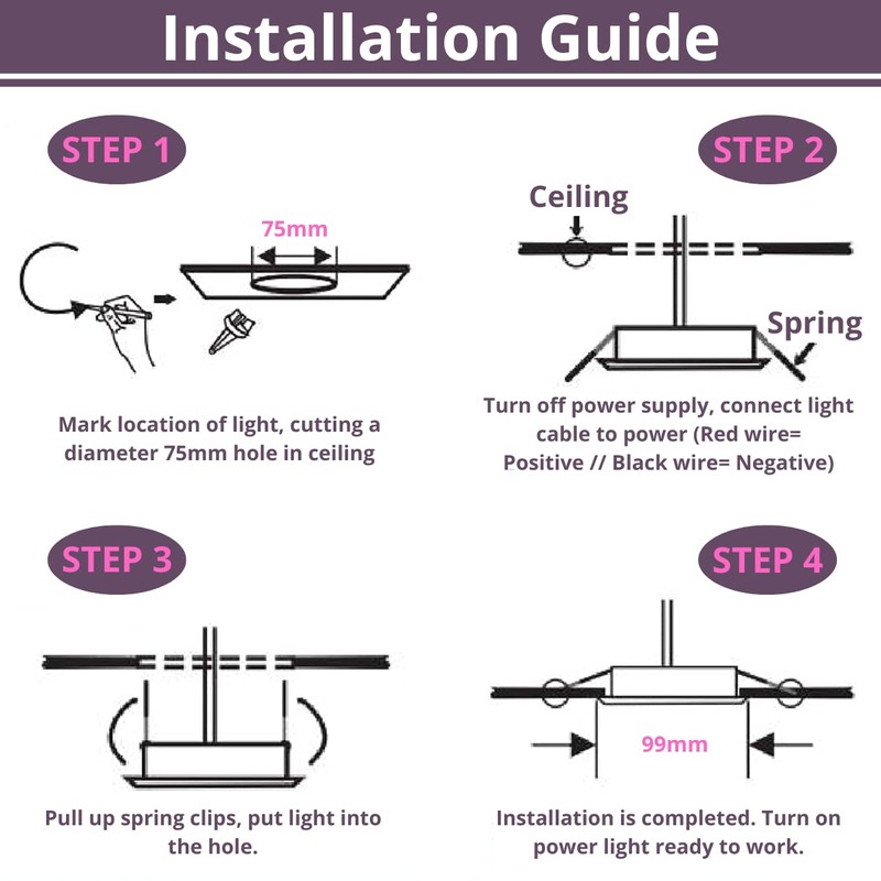 - 💡【EASY TO INSTALL Recessed Light with DRIVER Included】 This is a kind of LED recessed light very easy to install. Comes with driver included. It will only be necessary to connect the board to the power cable and introduce the downlight into the hole made to install it. The mounting is done using tabs, durable and easy to use.