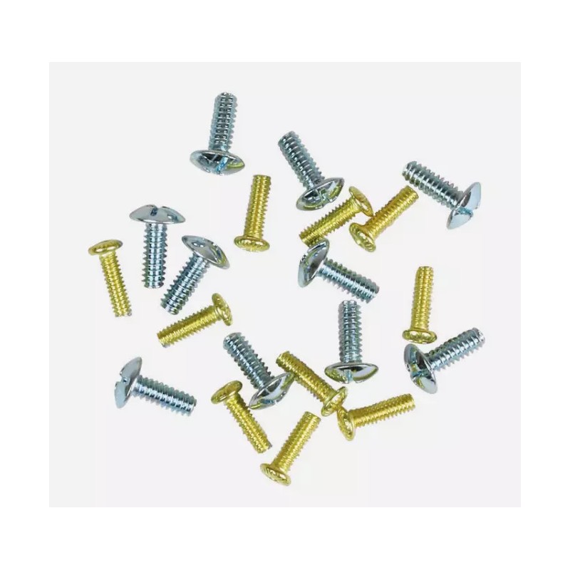 Includes (5) 8-32 x 1/2" Knurled Head Machine Screws - Brass Plated; (5) 8-32 x 1/2" Knurled Head Machine Screws - Antique Brass Plated; (5) 10-24 x 1/2" Phillips Pan Head Machine Screws - Brass Plated; (5) 10-24 x 1/2" Phillips Pan Head Machine Screws - Antique Brass Plated
