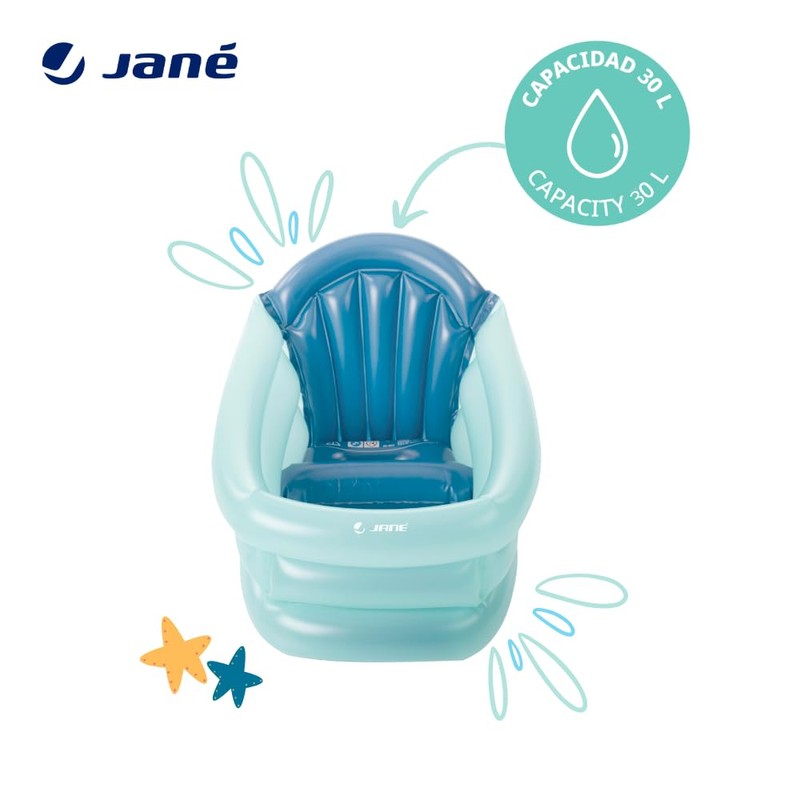 Jané 3 Position 30 Litre Inflatable Baby Bath Tub - Suitable from Birth - Growing Positions with Divider and Headrest