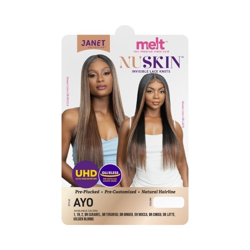Janet Collection melt NUSKIN Invisible Lace Knots AYO Wig – UHD Deep Part, Pre-Plucked Hairline, Baby Hairs, Transparent Swiss Lace Front Wig, Glueless Natural Look (COLOR DR CHOCO)