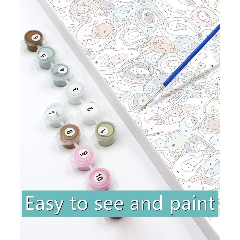- Easy to paint: the numbers and lines of the canvas are very clear, the corresponding pigment is accurately marked by the sticker. You only need to follow the instructions, paint by numbers one by one, suitable for all levels adults beginners and children. For people with basic painting skills, you can mix the paint yourself, complete the painting of your style