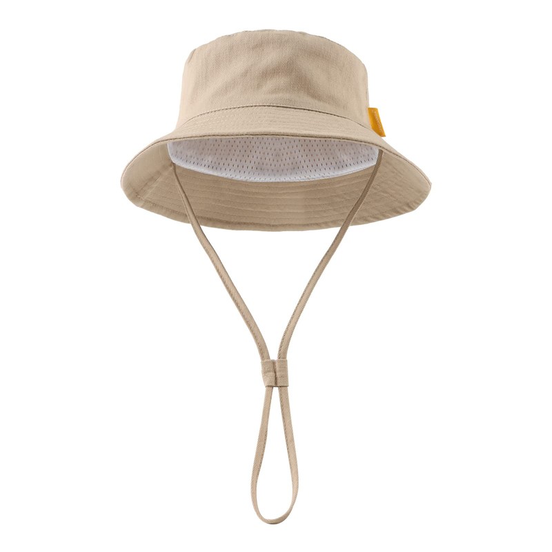 JANGANNSA Summer Baby Boys Hat Sun Protect Bucket Hat for Girls Wide Brim Cotton Beach Cap (Khaki, 18.9"(6-12 Months))