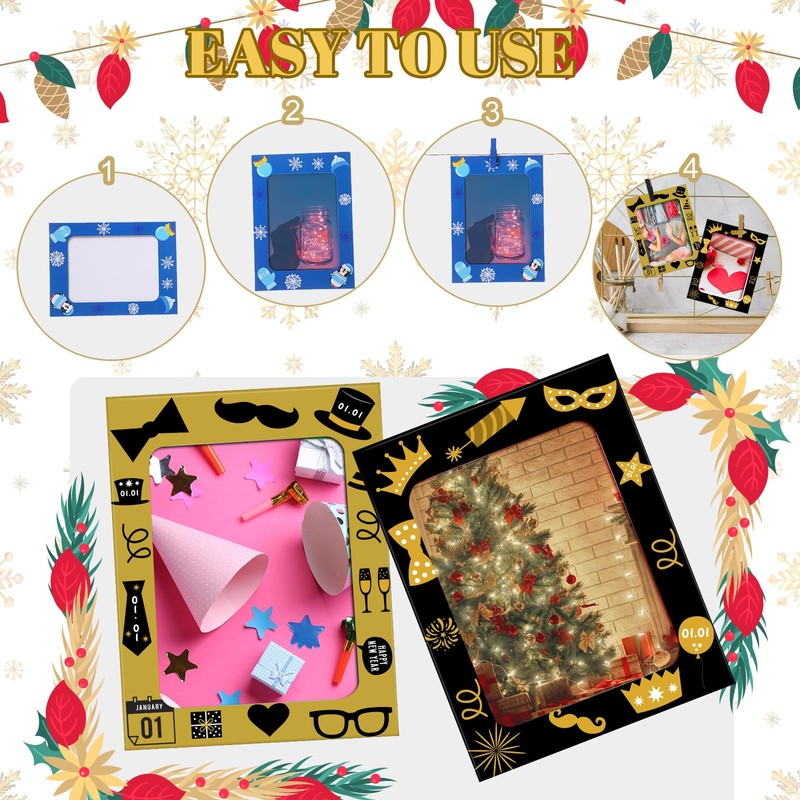 - New Year's Theme: our paper photo frames are designed in 4 styles, each with different winter elements such as firecracker, crown, top hat, beer bottle, glasses, etc.; You can also draw or paste things on the paper photo frames, suitable for DIY projects; They are the ideal canvas for your memories, making your photos a star and ideal for use during the New Year holiday