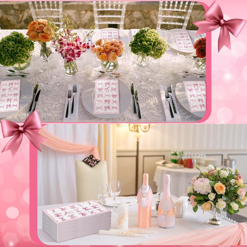 - Sufficient Quantity: 200 pink bow napkin sets are in sufficient supply to meet your daily use and holiday decoration needs; In view of their richness, these napkins ensure that you never have to worry about running out at parties or activities