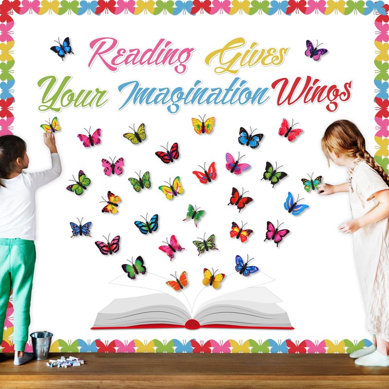 - 3D Exquisite Butterfly Design: featuring lifelike 3D butterflies, open book, and the phrase "Reading Gives Your Imagination Wings"; The rich colors add charm to your bulletin board, encouraging students' love of reading