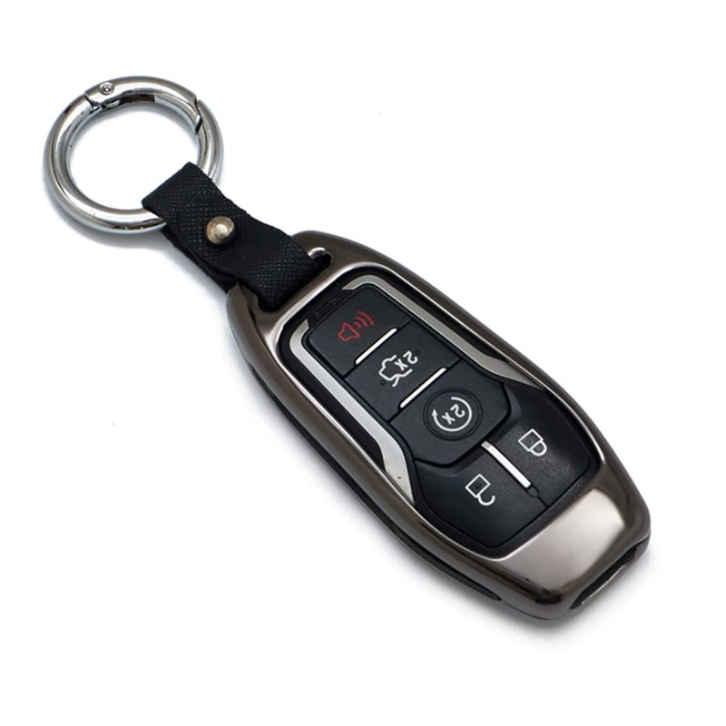 JanneChou Zinc Alloy Key Fob Case Cover for Ford Fusion F-150 Mustang Explorer Edge Lincoln MKZ MKC MKX with Key Chain (Gray)