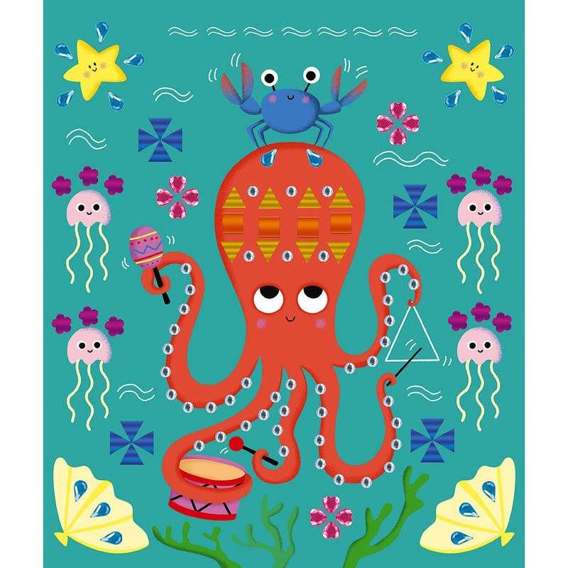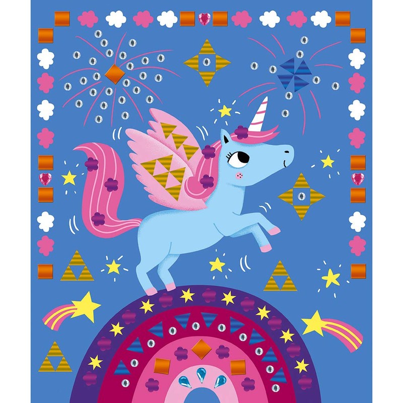 • The pleasure of decorating drawings with colourful rhinestones and glittering stickers, spectacular effect guaranteed. Box contents: 5 paintings to decorate, 2 sheets with rhinestones, 4 sheets with metallic stickers