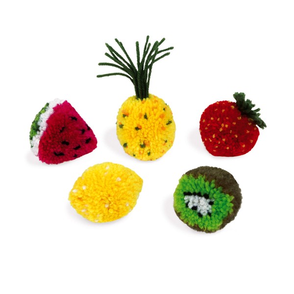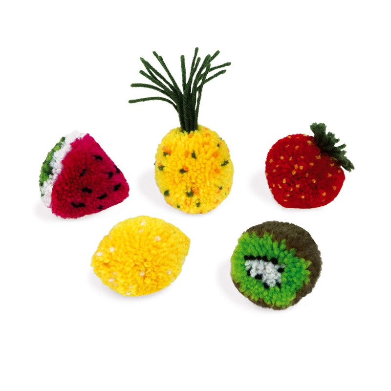 - Enjoy making these fantastic and original fruit-shaped pom-poms! Includes 10 cardboard discs and 10 balls of wool