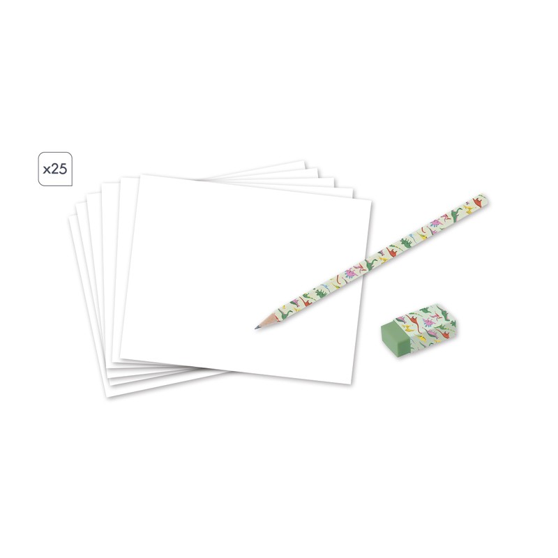 - FEATURES: This Janod game contains 20 drawing models, 25 blank sheets, 1 pencil, and 1 eraser. Estimated playtime is 3 hours and 30 minutes. A manual activity for children aged 7 to 10.