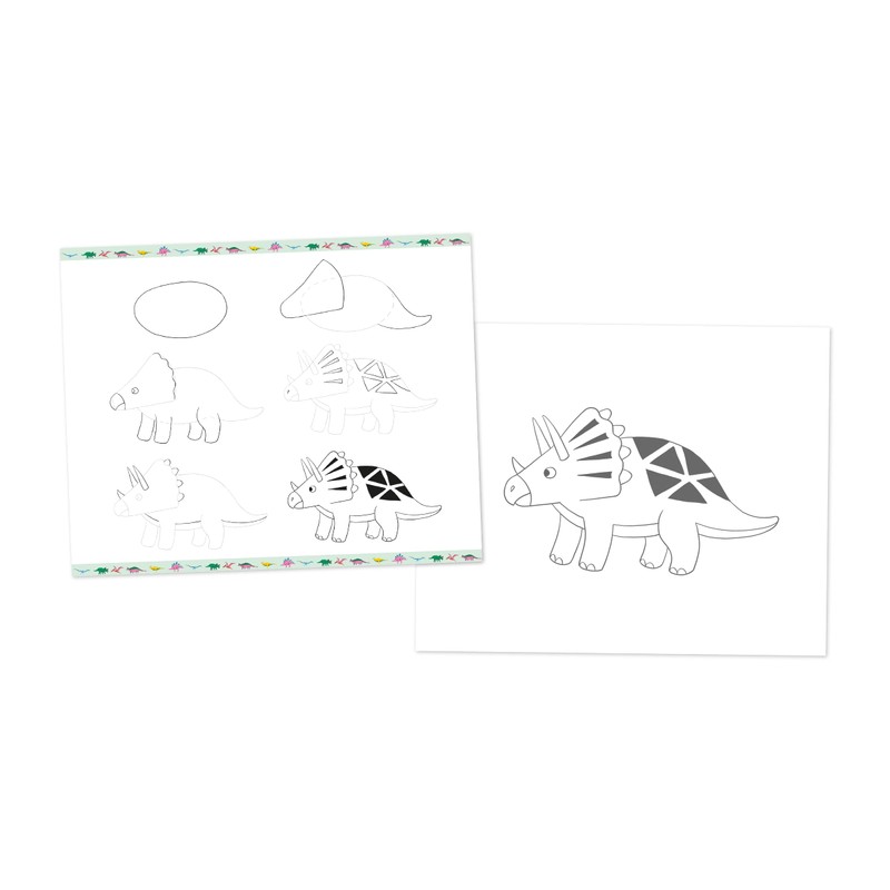 - I LEARN TO DRAW: In this creative kit, you have everything you need to easily reproduce 20 drawings broken down into several steps, on the theme of dinosaurs. Each step is simple, making drawing easy and fun