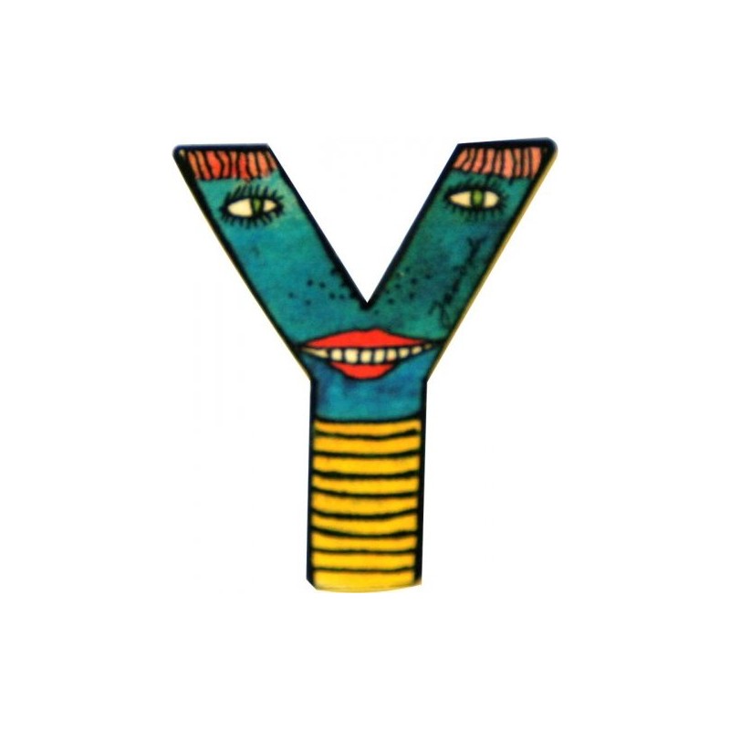 Janosch wooden letter Y Janosch wooden letters are colourful and fun designed, and have round contours. The Janosch wooden letters are approx. 6 cm tall, they are available from A - Z. So you can use the name of your child e.g. B to the room door or similar. and mark his own little kingdom.