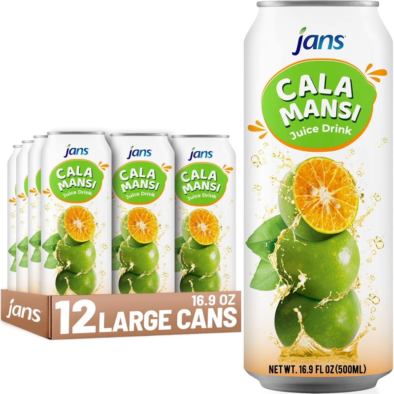 Jans Golden Lime Juice Calamansi Drink (16.9 oz Cans, 12-Pack) – Philippine Kalamansi Citrus Beverage – Natural Yuzu Style Lime Drink, Lemon, Orange, Tangerine, Citrus Substitute | From Pure Calamansi Extract | NOT From Concentrate
