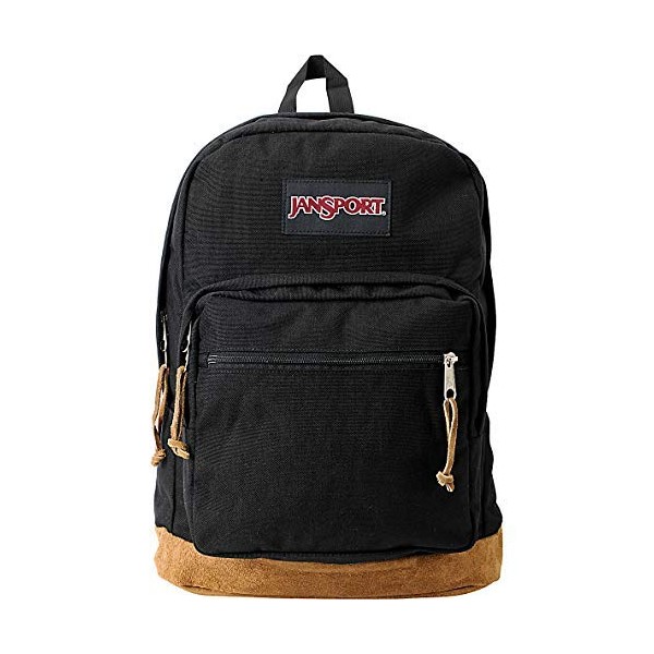 - THE RIGHT PACK BACKPACK: One of the iconic, classic JanSport backpacks, the JanSport Right Pack has a signature suede leather bottom, one main compartment with a 15" laptop sleeve, one zippered pocket with an internal organizer, and a front stash pocket.