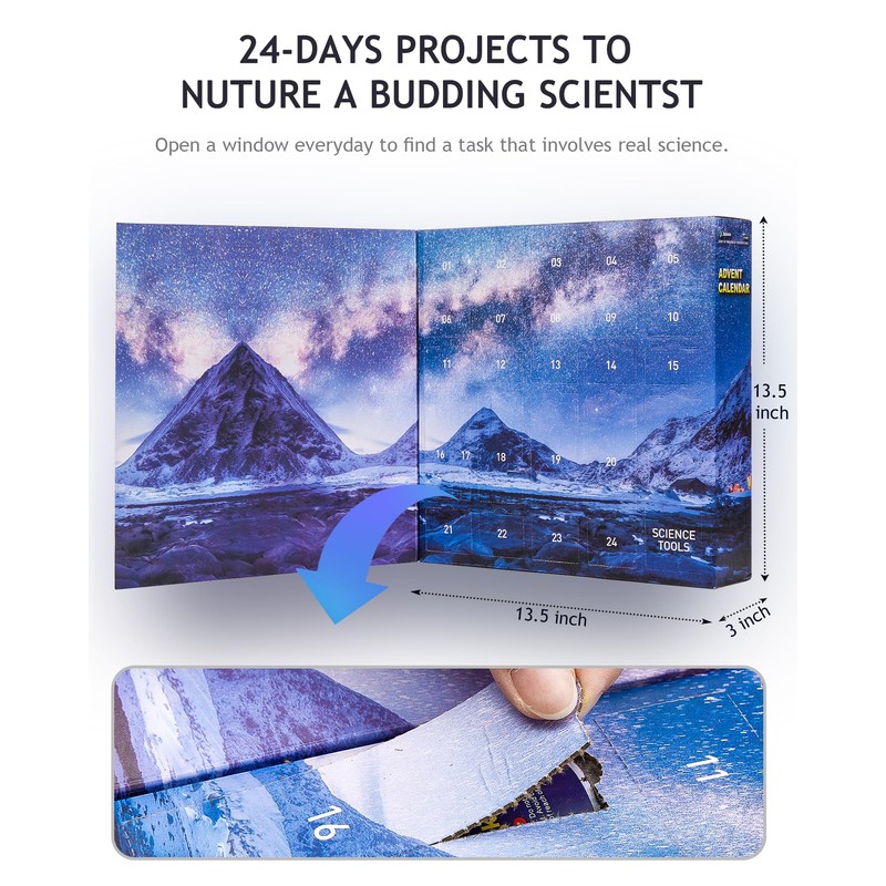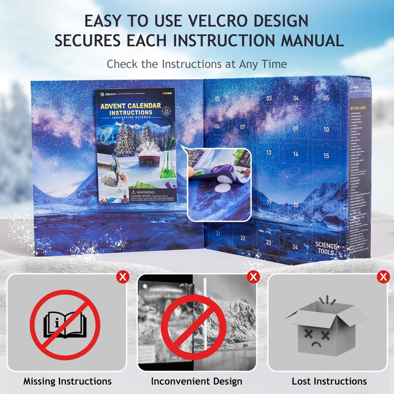 Japace Science Advent Calendar 2024 for Girls Boys, Christmas Gifts for Kids Age 4-6-8-12, Science Kits with 24 Cool Experiments, Christmas Countdown Calendar, STEM Projects for Kids Age 8-12