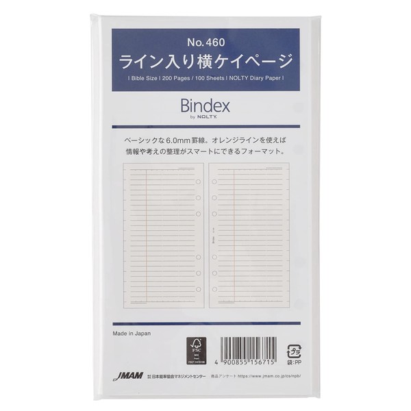 Japan Management Association Management Center, Personal Organizer, Refill, Bible, Horizontal Page with Line, 100 Sheets 460, White