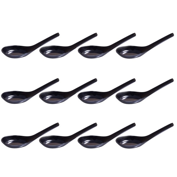 JapanBargain 12 Piece Chinese Japanese Wonton Soup Spoons, Black