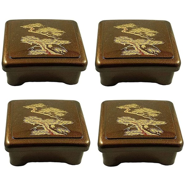 JapanBargain 4121x4, Set of 4 Bento Box Unagi Don Box Donburi Poke Box Traditional Japanese Lacquered Lunch Box Made in Japan, Gold Pine