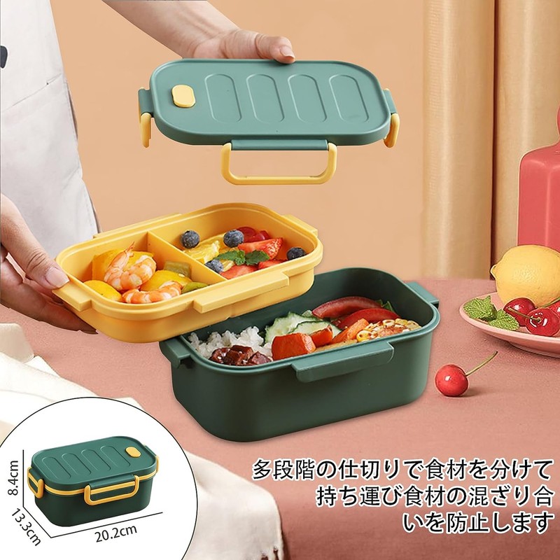 [Convenient to use] It's a lunch box with a two-tier design and storage capacity, but overall it's compact and easy to carry around.It is active in various situations such as sports day, commuting, picnics, travel, meetings, going out, school, and parties.