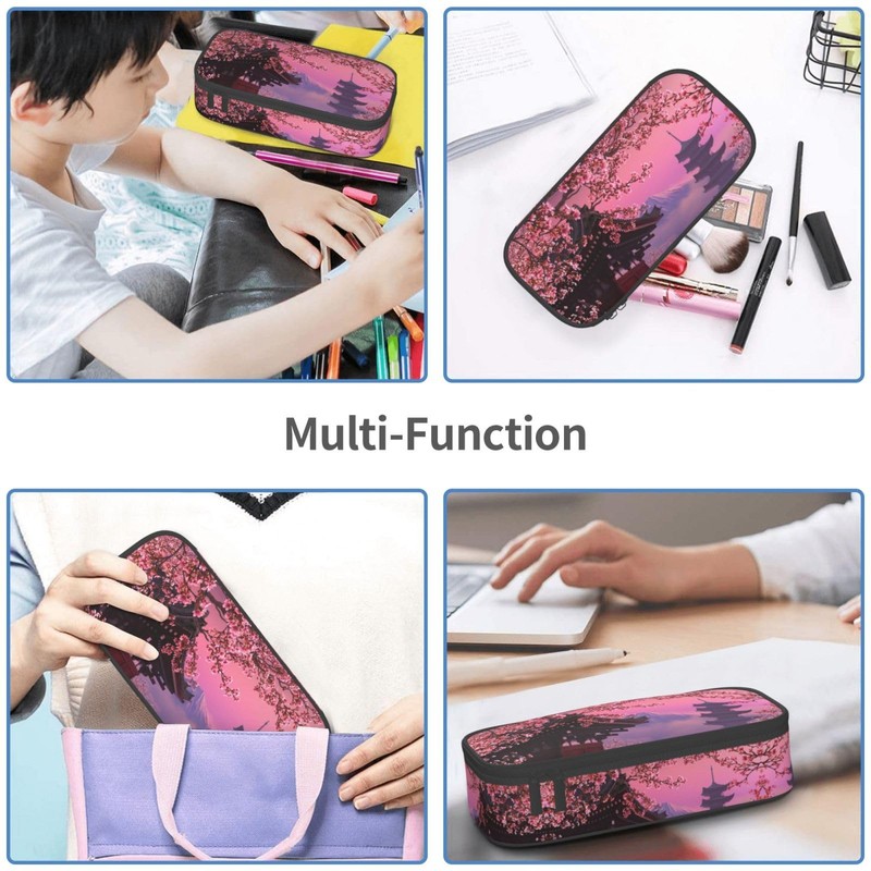 Japanese Cherry Blossoms And Mount Fuji Large Pencil Case, Pencil Pouch With Zipper Compartments Stationery Pencil Bag For Kids Teens Students School Supplies