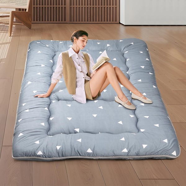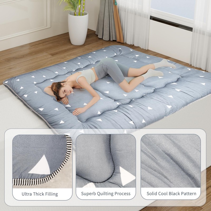 - WIDE VERSATILITY: It can be used as Camping Mattress/Bedroom Futon/Living Room Futon/Tatami Mat/Floor Mattress/Sleeping Floor mat/Tent Mat/Guest Mattress/Japanese Bed Mat, also can be kids play mat/floor pillow bed, also bring it with you in your car when going to anywhere, it is a good accompany for your family, Just Enjoy Your Leisure Time with Japanese Floor Futon Mattress