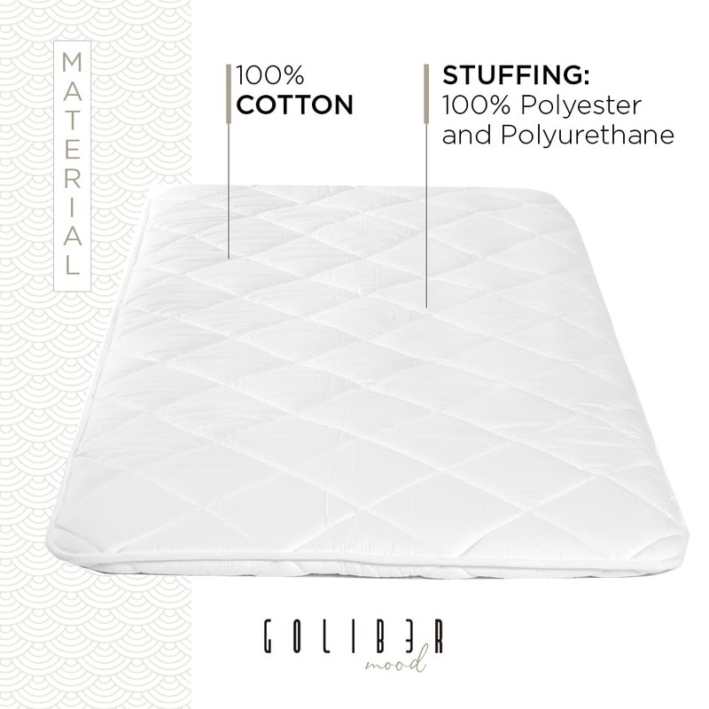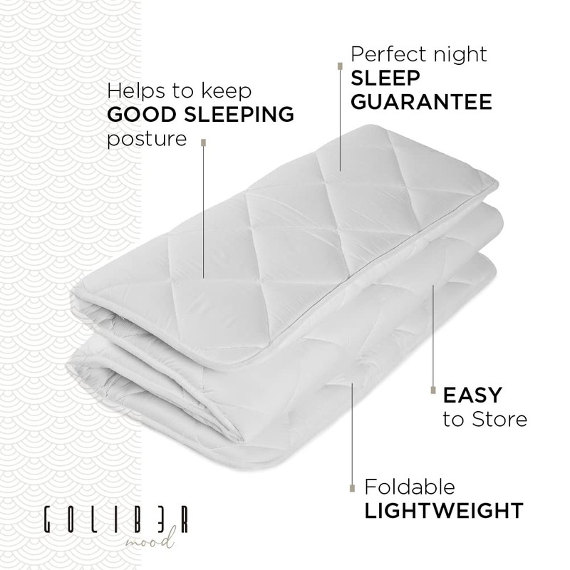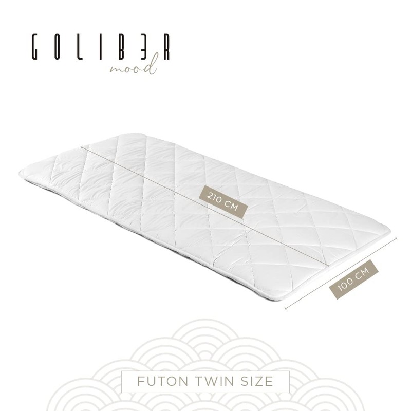 - PREMIUM 3 LAYER FUTON - Goliber three-layer futon mattress is made with a 100% cotton cover layer, a second layer of %100 polyester and a third layer of 100% polyurethane. These three layers disperse pressure on the body and provide a comfortable sleep helping keep a good healthy sleeping posture. The special sewn triangle details provide greater firmness and comfort. To prevent the Futon getting damaged, please use covers or sheets.