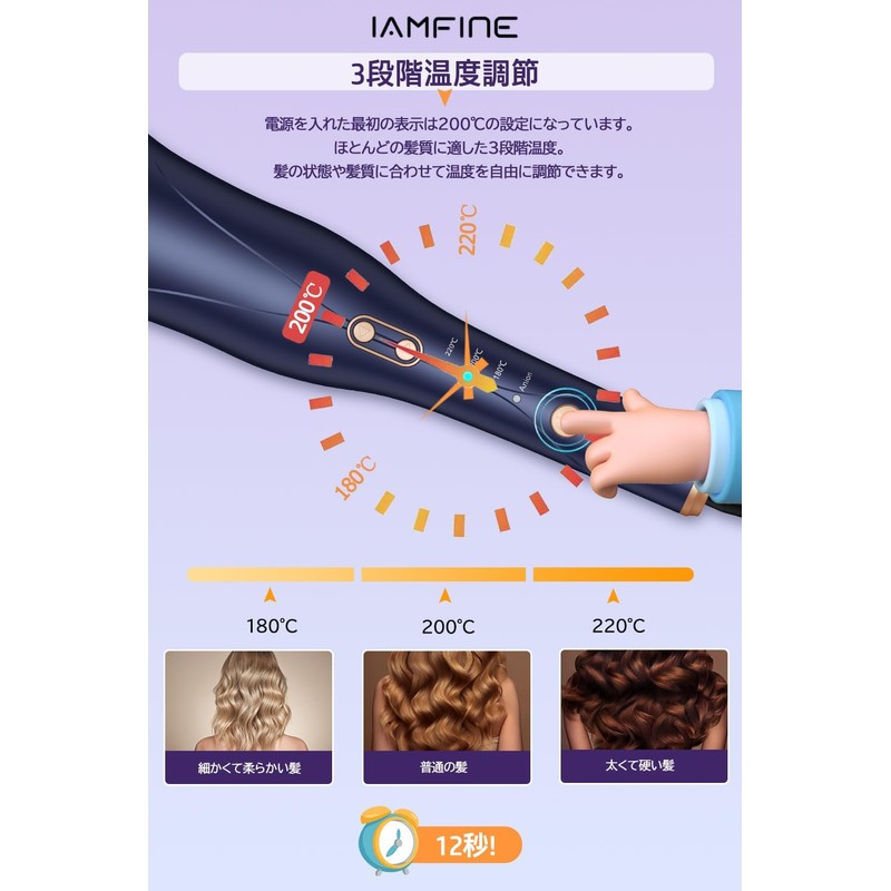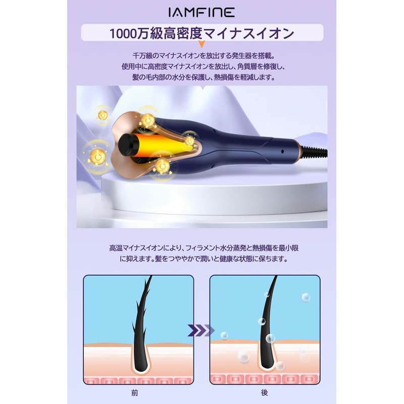 [Japanese Hair Iron] IAMFINE Hair Iron, Auto Curling Iron, Automatic Winding, Burn Prevention, MAX 220℃, 3-level Temperature Adjustment, Left/Right Rotation Direction Adjustment,