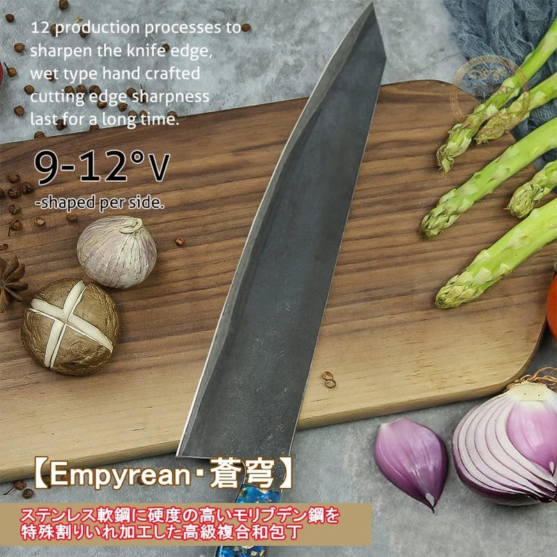 [Japanese Knife] Utaki knife Black Uchikyu Sword (Empyrean, Aoi) Beef knife 3-layer cobalt alloy steel 10Cr15MoV core material blade length 230mm a gold-plated blue resin handle