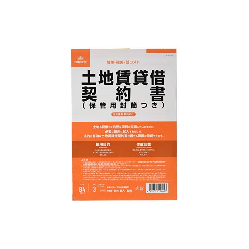 Japanese Law Contract 2-1 / Land Lease Agreement (with envelope for storage) (Improved vertical)
