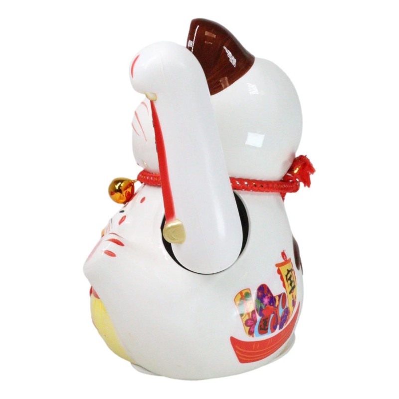 • This Cute Maneki Neko Cat Charm Figurine is made of porcelain ceramic, hand painted and polished individually. This beckoning cat has a waving left arm feature. Uses AA Battery