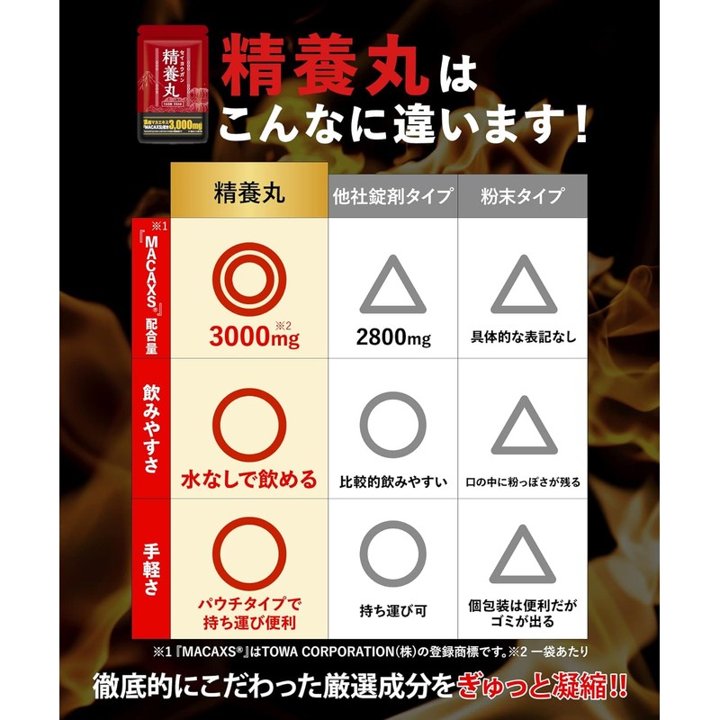 [Industry's best formulation] Also known as the queen of Andean herbs Maca, after years of joint research with professor emeritus at Kinki University's Faculty of Agriculture 3000 mg of MACAXS developed by TOWA CORPORATION Co., Ltd. MACAXS is a registered trademark of TOWA CORPORATION.