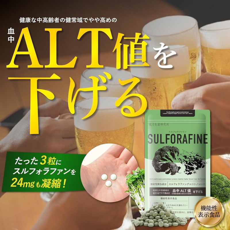 ✅自然Nature-derived liver function improvement ingredientsおRecommended for those who are worried about their liver due to dating!Sulforafan derived from broccoli approaches the liver to improve ALT levels!