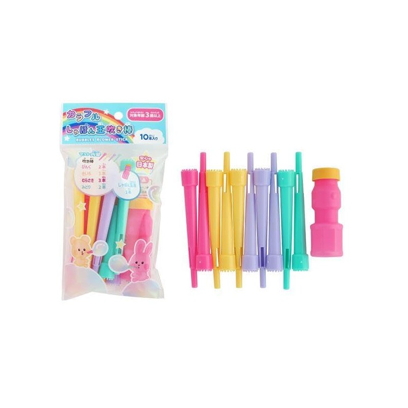 Japanese Pearl Processing Colorful Shabon Ball Blowing Rods, Pack of 10, Includes Bubble Ball Liquid