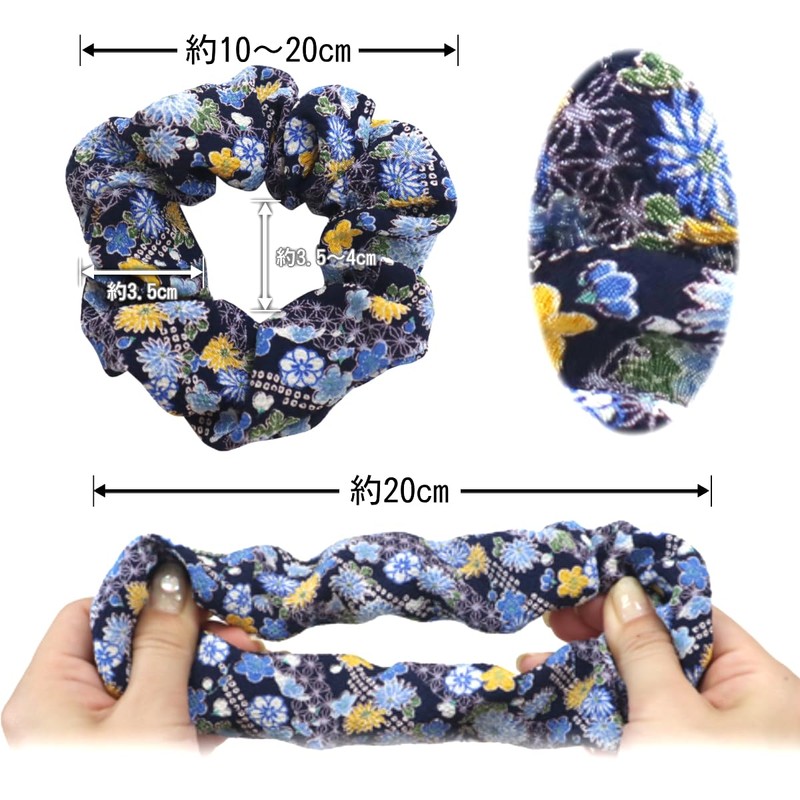 Japanese Scrunchie Hair Ties CHIRIMEN Hair Elastics Bands (Blue)