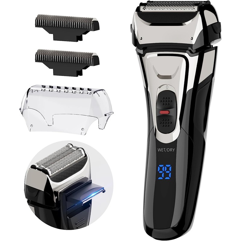 [Japanese Shaver] Men's Shaver Electric Shaver Electric Reciprocating Shaver 3 Blades Wet Dry Bath Shaving IPX7 Waterproof LED Display Trimmer Included Replacement Blades