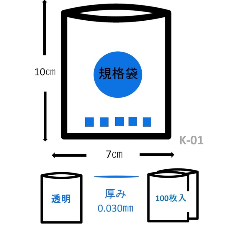 Japax K-01 Plastic Bags, Transparent, Height 3.9 x Width 2.4 x Thickness 0.01 inches (10 x 6 x 0.03 mm), 100 Pieces, Standard Bags