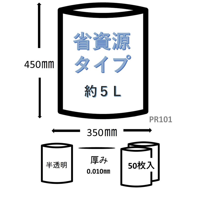 Japax PR101 Trash Bags, Translucent, Width 13.8 x Height 17.7 inches (35 x 45 cm), Thickness 0.004 inches (0.010 mm), Approx. 1.3 gal (5 L), 50 Pieces, Room Project, For Indoor Use