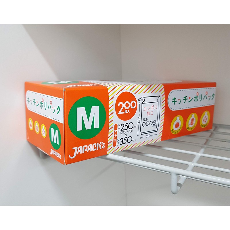 Japax SSB12 Storage Bags, Translucent, Size M, Width 8.3 inches (21 cm) + Depth 1.6 inches (4 cm) x Height 13.8 inches (35 cm), Thickness 0.008 mm), 200 Pieces, Kitchen Polypack, Embossed, Easy to Open Plastic Bag, Compact