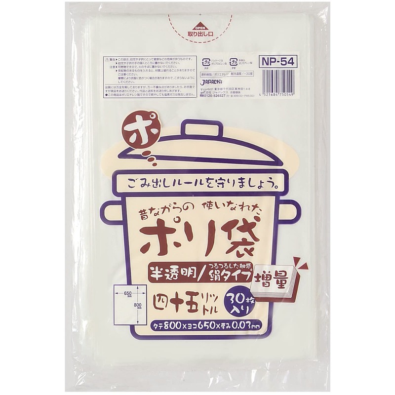 Japax Traditional Plastic Bags, Translucent, 1.6 gal (45 L), 30 Sheets