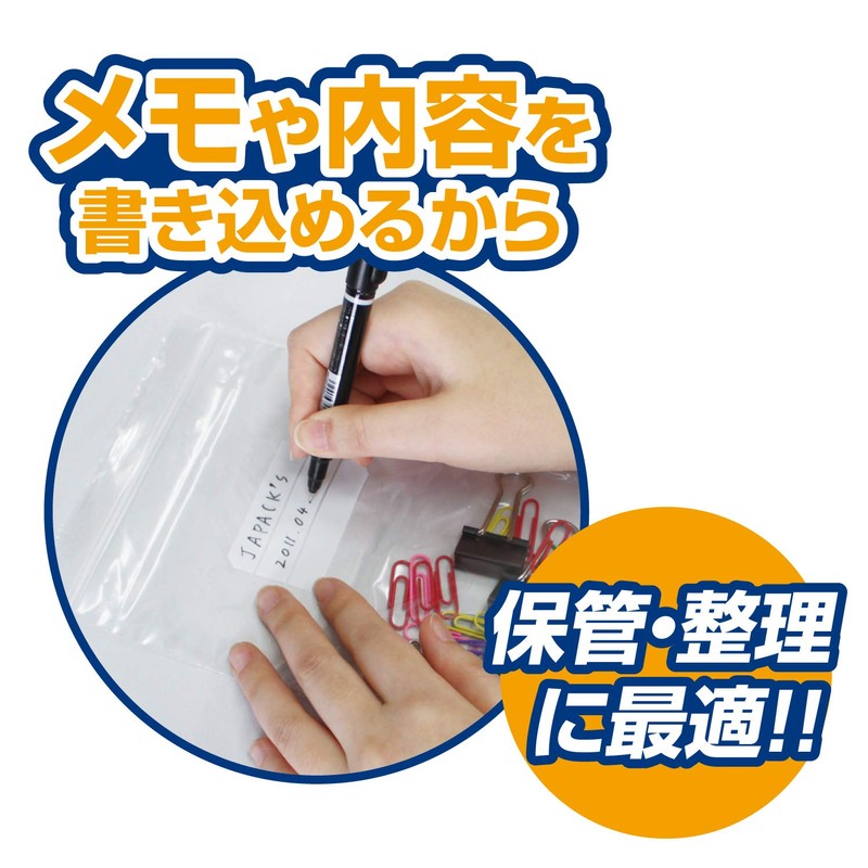 Japax WGC-4 Zipper Plastic Bags, Transparent, Width 2.8 x Height 3.9 inches (7 x 10 cm), Thickness 0.01 inches (0.040 mm), Write-On Type, Perfect for Storage and Organization, 200 Bags
